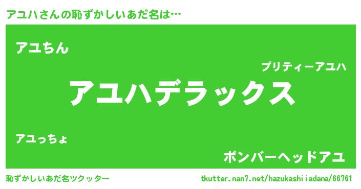 | ヘコむあだ名 | 『アユハ(震え声)』『アユもー』 |