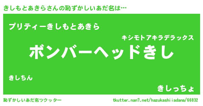 | 男性向けラノベタイトル風あだ名 | 『きしもとあきらに滅ぼされるだけの簡単なお仕事です』 |