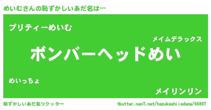| ヘコむあだ名 | 『めいにー』『めいぷりん』『豆乳』 |
