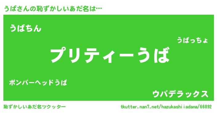 | ヘコむあだ名 | 『うばっふぃ~』『うば(遠い目)』 |