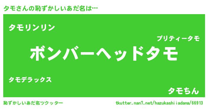 | ポケモン風あだ名 | 『タモゴンZ』『タックウザ』『ヒタモ』 |