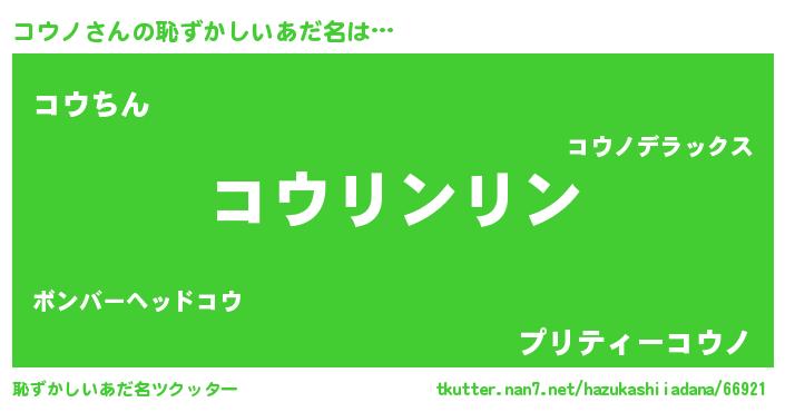 | ヒーロー風カッコイイあだ名 | 『仮面コウダー』『魔戒騎士コウ』 |