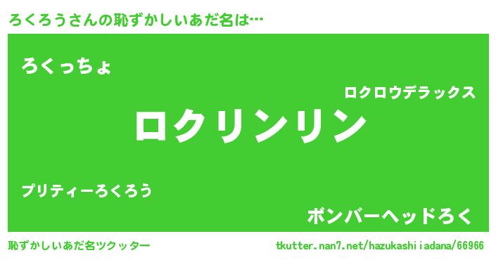| 意味不明あだ名 | 『とにかく怪しいろくろう』 |