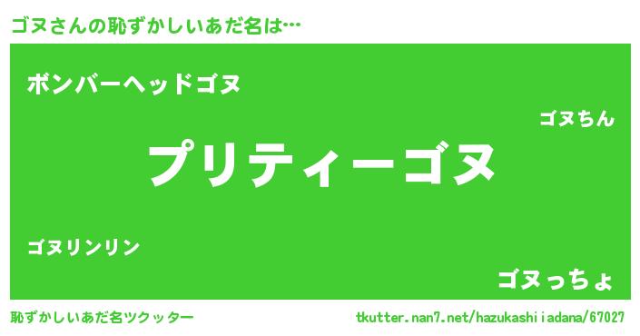 | 男性向けラノベタイトル風あだ名 | 『緋弾のゴヌ』『ゴヌアートオンライン』 |