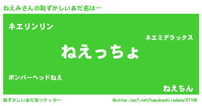 | ポケモン風あだ名 | 『ネエミダネ』『ヒネエミ』 |