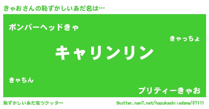 | ヘコむあだ名 | 『きゃ太郎』『きゃにゅー』 |