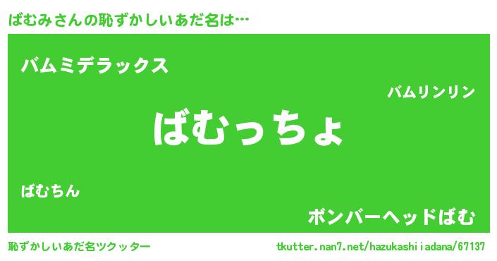 | 意味不明あだ名 | 『ばむみフォーエバー』『自称ばむみ』 |