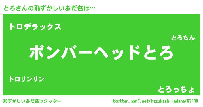 | ヒーロー風カッコイイあだ名 | 『天空の使者とろ』『超時空戦士トロ』 |