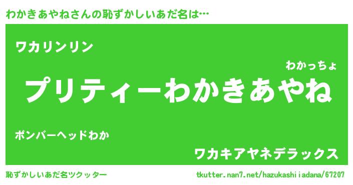 | ヒーロー風カッコイイあだ名 | 『仮面ワカダー』『スーパーワカキアヤネ』 |