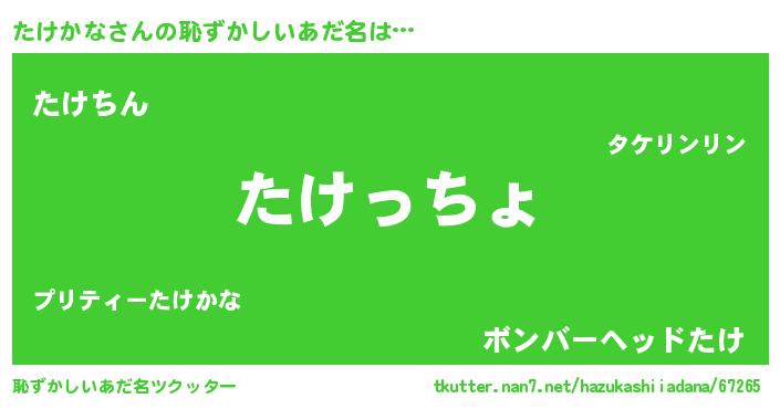 | 意味不明あだ名 | 『たけかなフォーエバー』 |