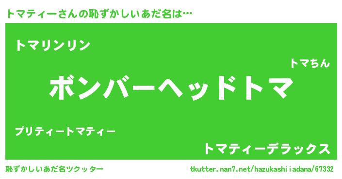 | ヒーロー風カッコイイあだ名 | 『天空の使者トマティー』『炎刃騎士トマ』 |