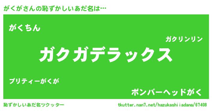 | 意味不明あだ名 | 『自称がくが』『永久保存がくが』 |