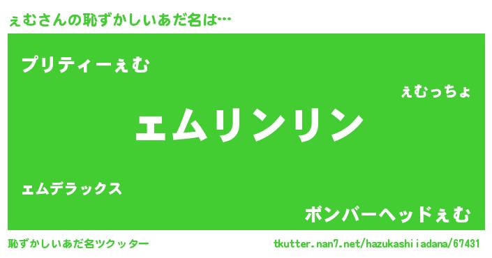 | ポケモン風あだ名 | 『ヒェム』『ェムゴンZ』『ェムチュウ』 |