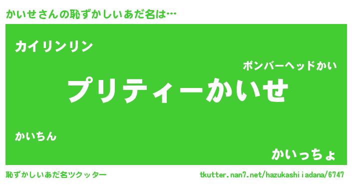 | 意味不明あだ名 | 『ペロリンかいせ』『かいせフォーエバー』 |