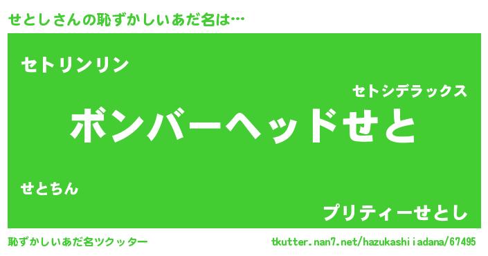 | 意味不明あだ名 | 『眠気覚ましガムせとし味』『自称せとし』 |