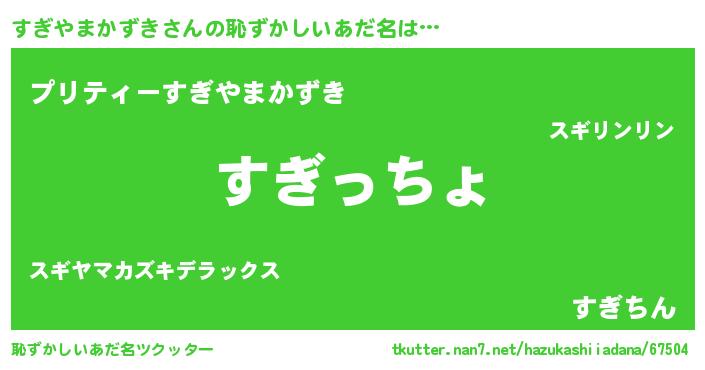 | 女子向けラノベタイトル風あだ名 | 『すぎやまかずきの雑貨屋さん』 |