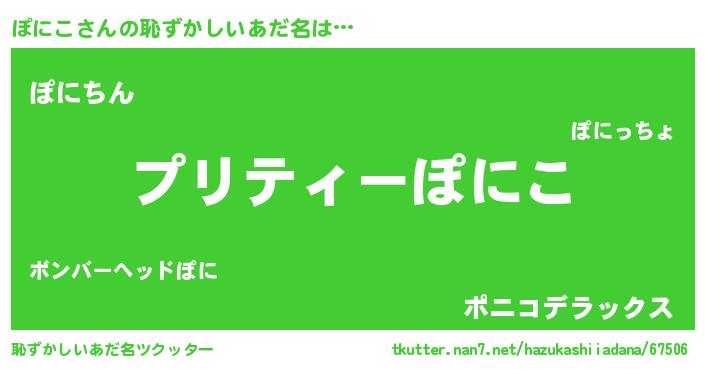 | 欧米人風あだ名 | 『マイケルぽにこ』『ダルビッシュぽにこ』 |
