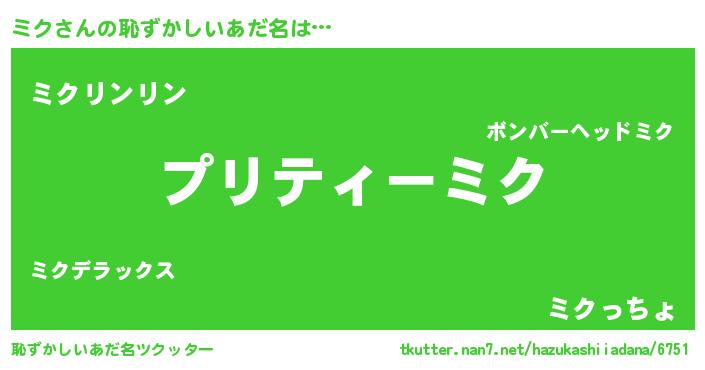 | ヘコむあだ名 | 『ミクにー』『ミクぷりん』『豆乳』 |