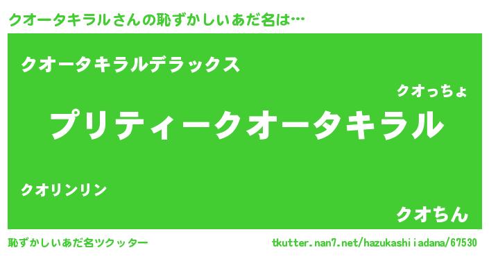 | ヒーロー風カッコイイあだ名 | 『スーパークオータキラル』 |