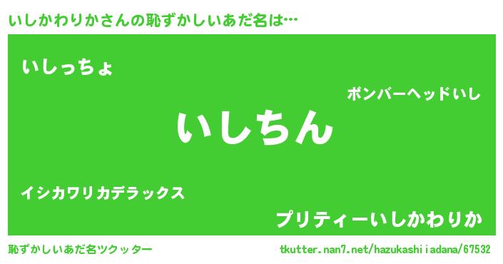 | ヒーロー風カッコイイあだ名 | 『ネオイシカワリカ』『仮面イシダー』 |