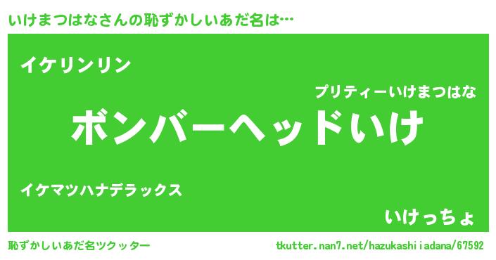 | 胡散臭い通販商品みたいなあだ名 | 『100人中100人が認めたイリジウム磁石…その名も「いけまつはな」』 |