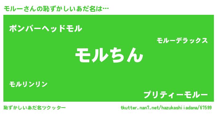| 男性向けラノベタイトル風あだ名 | 『モルースレイヤー』『緋弾のモルー』 |