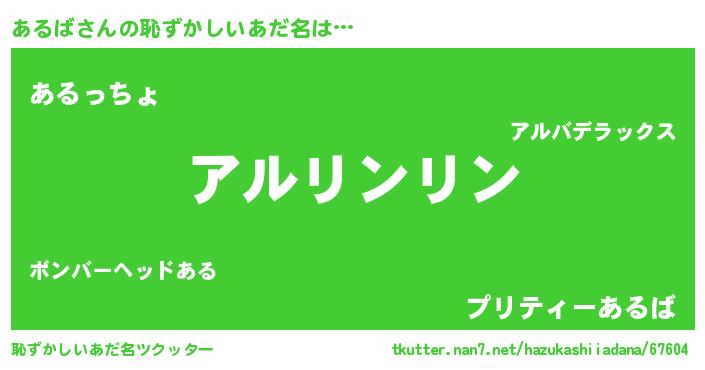 | 意味不明あだ名 | 『住所不定無職あるば(2歳)』 |