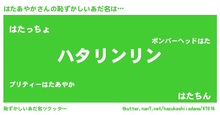 | ヒーロー風カッコイイあだ名 | 『暗黒騎士ハタ』『ネオハタアヤカ』 |