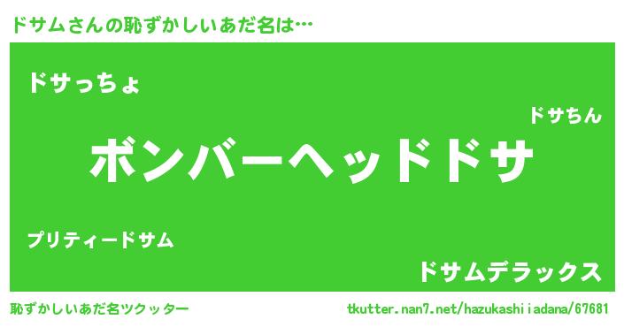 | 意味不明あだ名 | 『なめこ科ドサム属』『自称ドサム』 |
