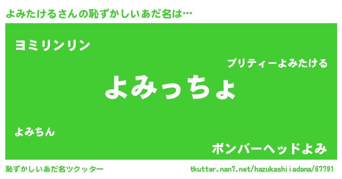 | 意味不明あだ名 | 『よみたけるフォーエバー』 |