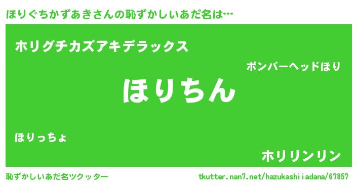| ヘコむあだ名 | 『ほりぐちかずあき(爆)』『ほりっ子』 |