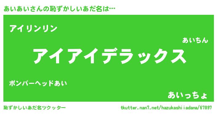 | 男性向けラノベタイトル風あだ名 | 『Re:あいあいから始める異世界生活』 |