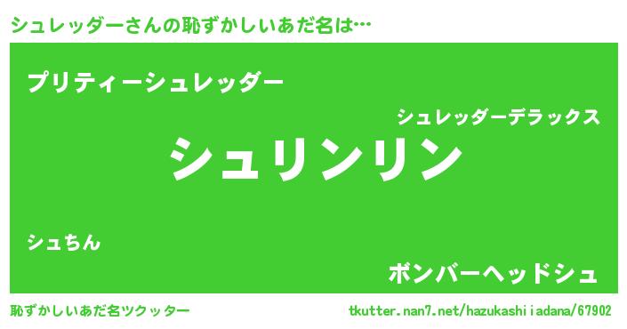 | ヒーロー風カッコイイあだ名 | 『暗黒騎士シュ』『スーパーシュレッダー』 |
