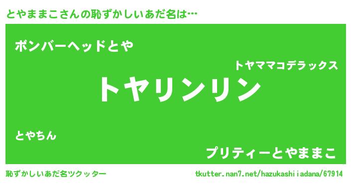 | ポケモン風あだ名 | 『トヤゴンZ』『ヒトヤママコ』 |