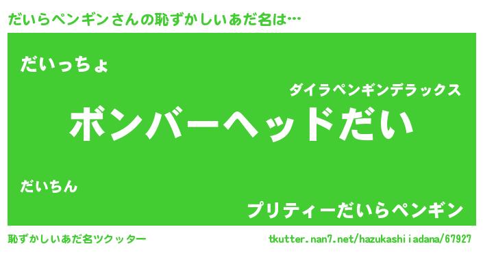 | ヒーロー風カッコイイあだ名 | 『正義の使者だいらペンギン』 |