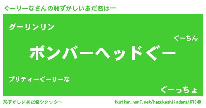 | 意味不明あだ名 | 『眠気覚ましガムぐーりーな味』 |