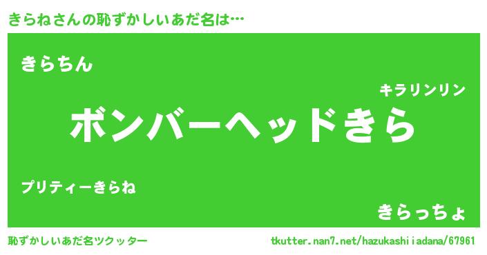 | 意味不明あだ名 | 『住所不定無職きらね(53歳)』 |