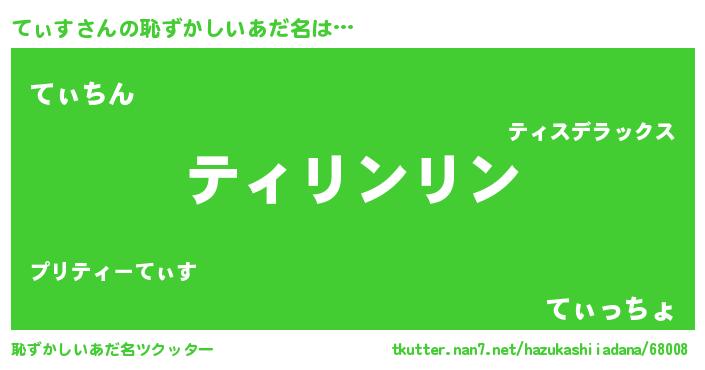 | 意味不明あだ名 | 『住所不定無職てぃす(93歳)』 |