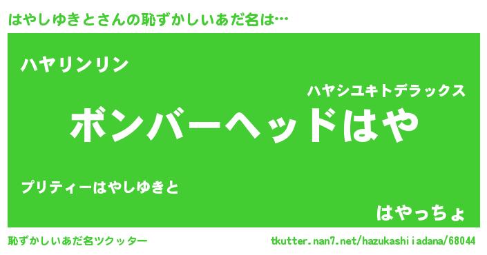 | 男性向けラノベタイトル風あだ名 | 『ノーゲーム・ノーハヤシユキト』 |