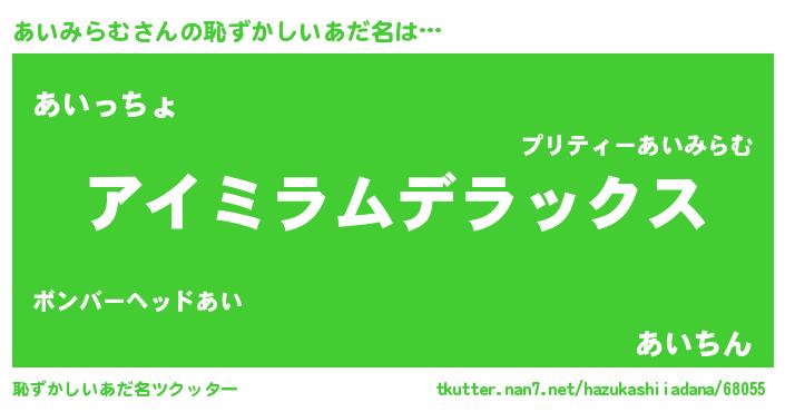 | 男性向けラノベタイトル風あだ名 | 『Re:あいみらむから始める異世界生活』 |