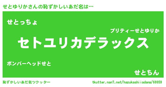 | ヘコむあだ名 | 『豆乳』『せとゆりか(笑)』 |