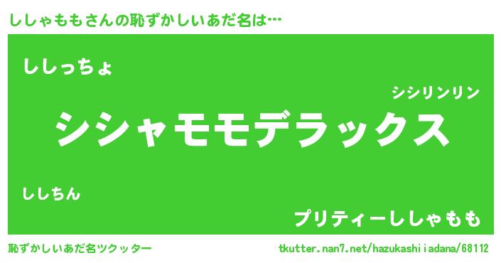 | 意味不明あだ名 | 『自称ししゃもも』『ペロリンししゃもも』 |