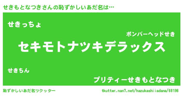 | 意味不明あだ名 | 『自称せきもとなつき』 |