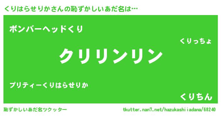 | ヘコむあだ名 | 『くりっちょ』『くりはらせりか(小並感)』 |