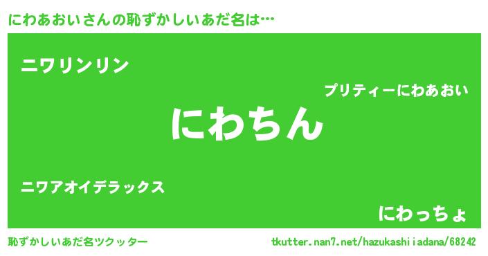 | ヘコむあだ名 | 『にわあおい(小並感)』『にわを』 |