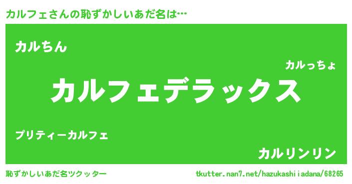 | 意味不明あだ名 | 『自称カルフェ』『永久保存カルフェ』 |