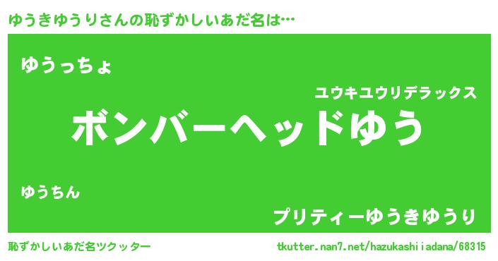 | ヒーロー風カッコイイあだ名 | 『慈愛の使者ゆうきゆうり』 |