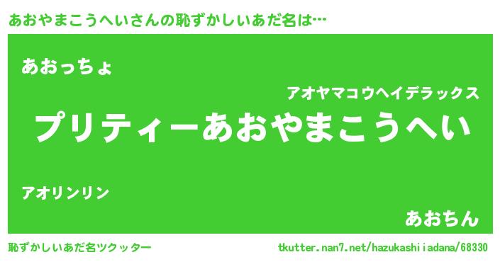 | 男性向けラノベタイトル風あだ名 | 『アオヤマコウヘイアートオンライン』 |