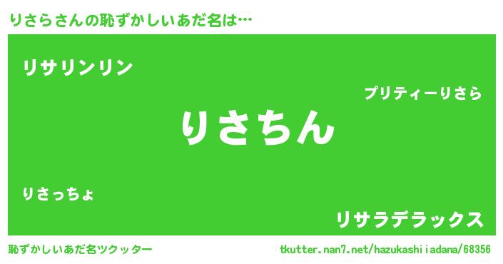 | ヘコむあだ名 | 『りさら(苦笑)』『りさっぺ』 |