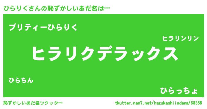 | ヒーロー風カッコイイあだ名 | 『仮面ヒラダー』『ウルトラ戦士ヒラリク』 |
